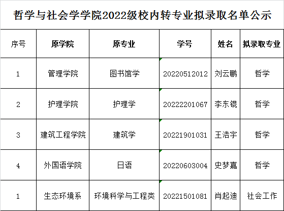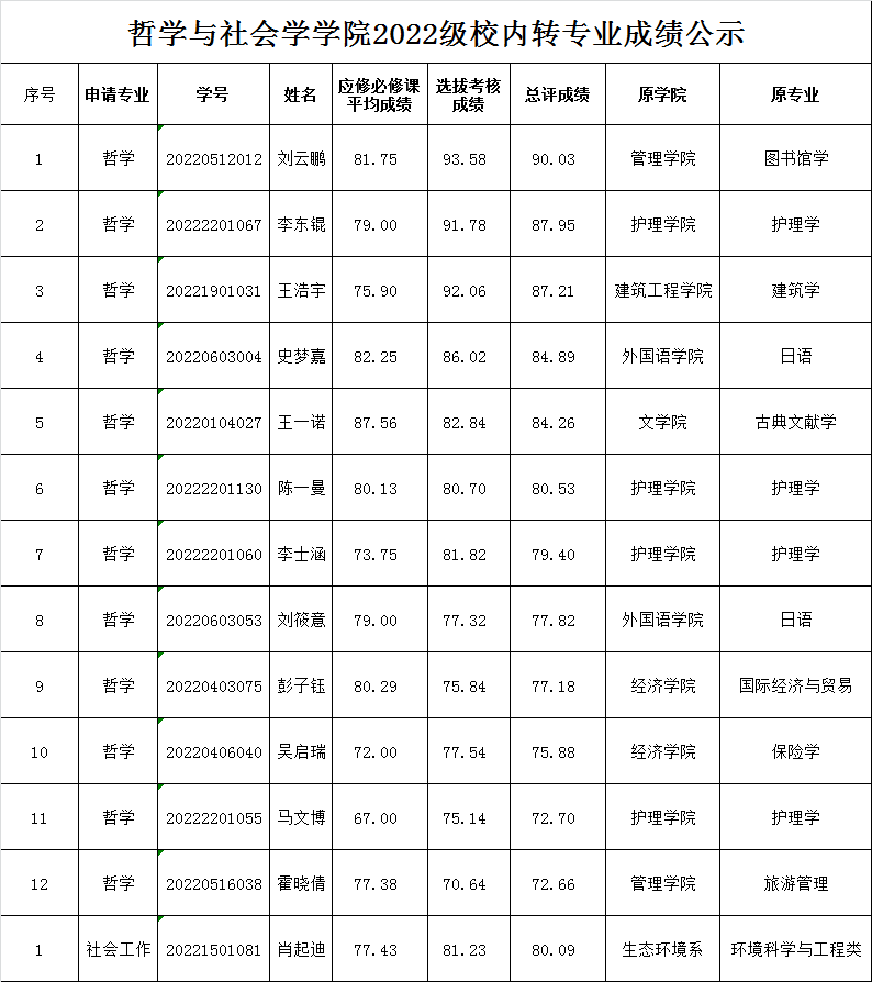 91短视频 2022级校内转专业成绩及拟录取学生名单公示