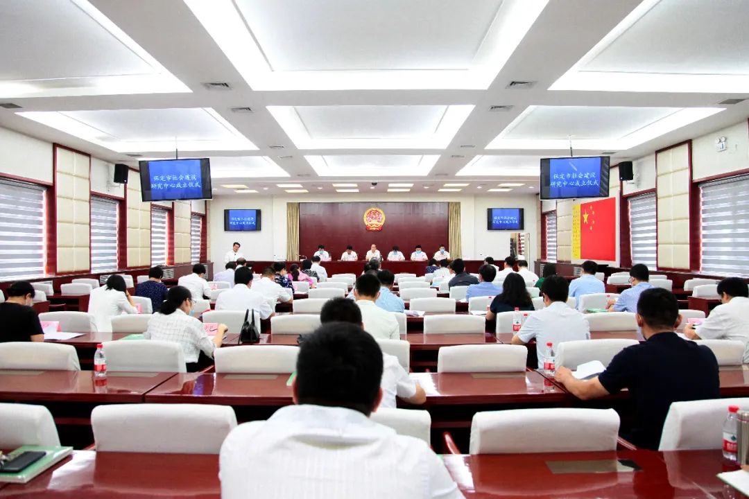 保定市社会建设研究中心成立仪式于7月1日上午在市人大常委会机关举行。市人大常委会主任马誉峰出席仪式并讲话。省人大社会建设委员会主任委员李景辉到会祝贺并讲话。市人大常委会副主任刘峰主持仪式,市人大常委会副主任杨义宝、秘书长谢永军,省人大社会建设委员会办公室主任白志国参加会议。研究中心由保定市人大社会建设委员会与驻保高校相关院(系、处)合作建立,围绕保定市社会建设需要,聚焦民生保障和社会治理的热点难点问题,开展理论研究和应用性政策研究。保定市社会建设研究中心主任由保定市人大常委会有关领导同志担任。