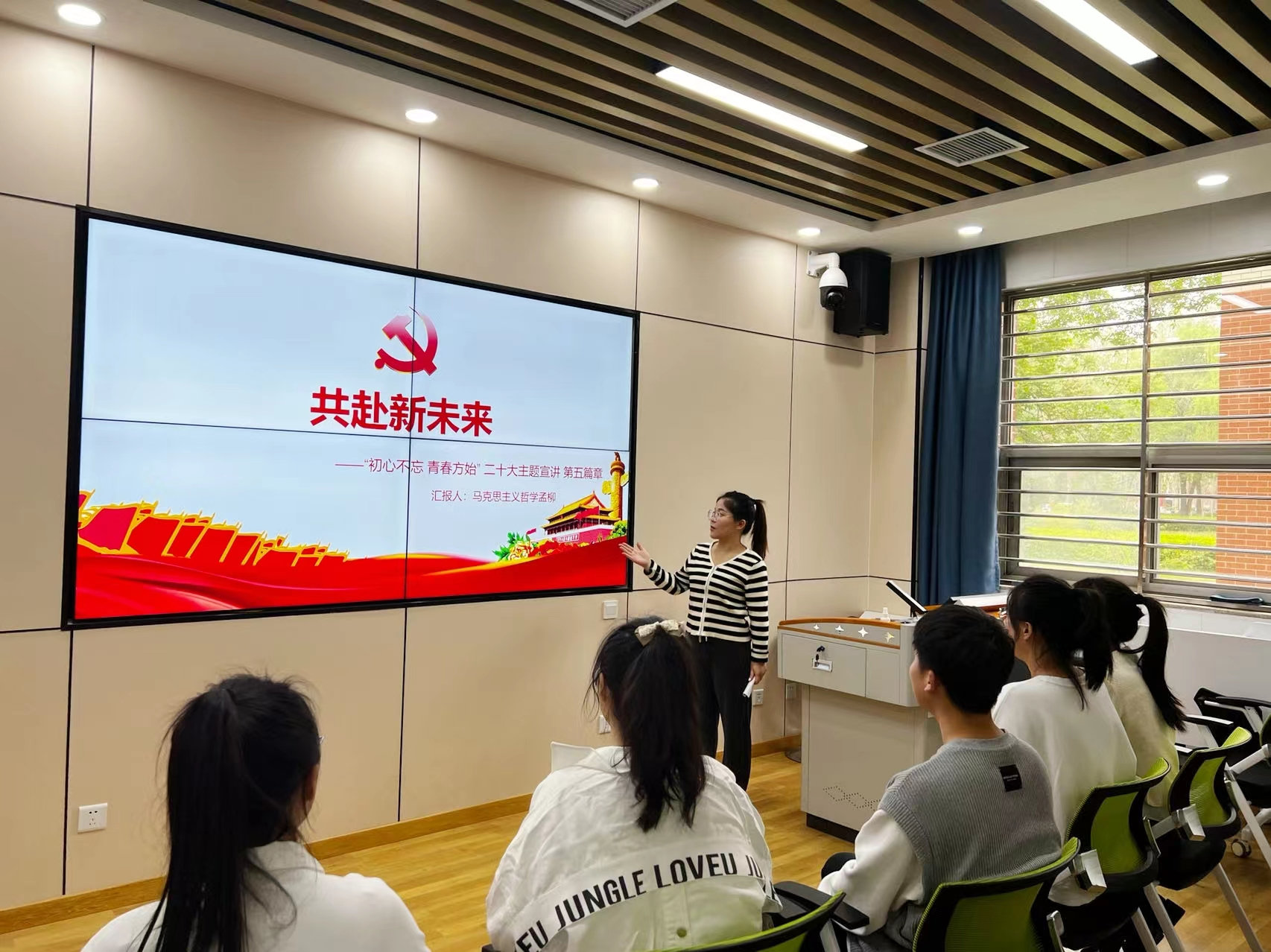 张露红指出,党的二十大,是在全党全国各族人民迈上全面建设社会主义现代化国家新征程、向第二个百年奋斗目标进军的关键时刻召开的一次十分重要的大会。学习宣传贯彻党的二十大精神,事关党和国家事业继往开来,事关中国特色社会主义前途命运,事关中华民族伟大复兴。同学们要坚定信心和决心,自觉做党的创新理论的坚定信仰者和忠实践行者,发挥专业优势,以朋辈研学、交流、实践的丰富形式,推动党的二十大精神在91短视频