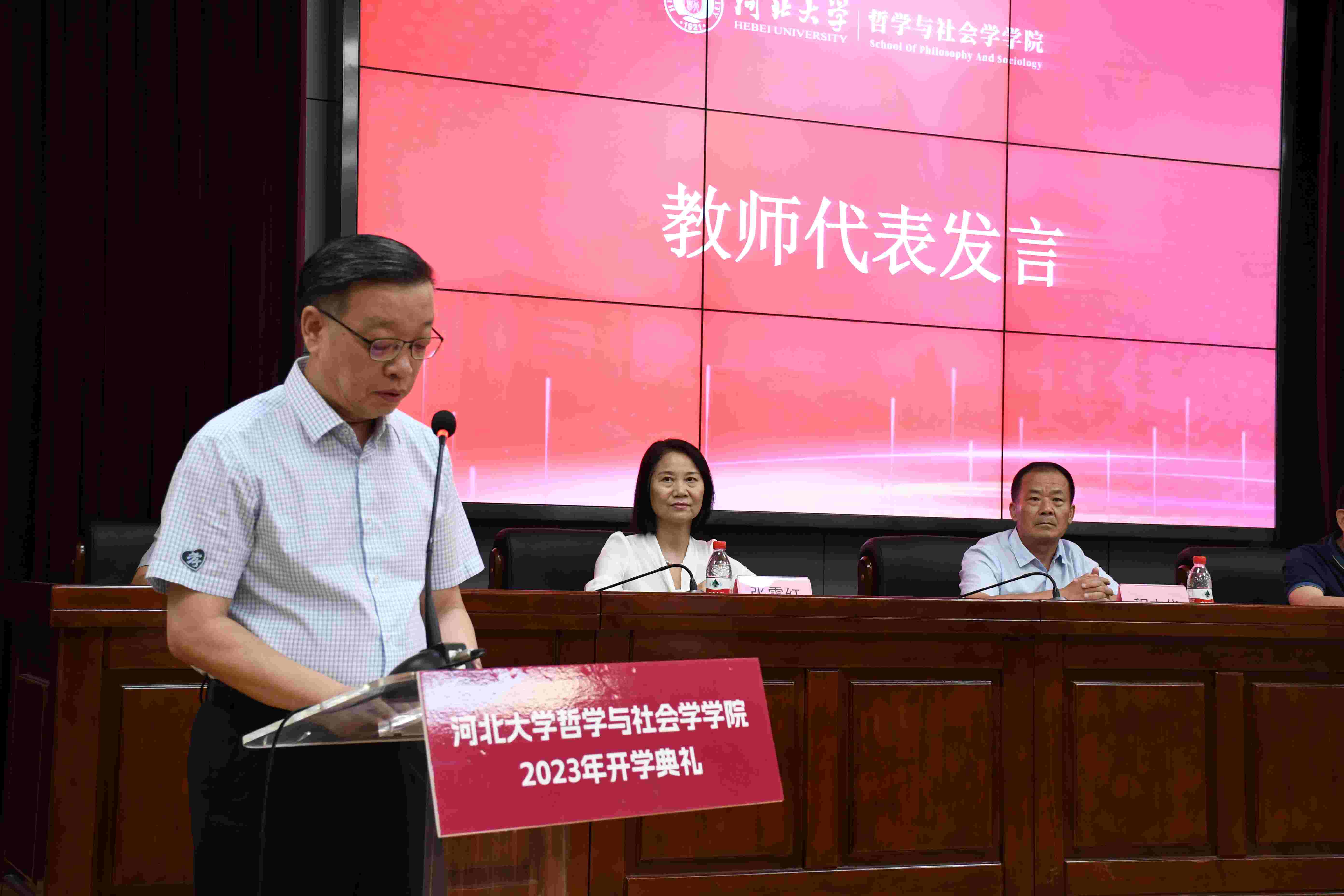 91短视频 院长程志华作了题为《放飞青春梦想》的精彩讲话,他详细生动地介绍了91短视频 的历史沿革,雄厚的师资力量,蓬勃的学科发展,指出91短视频 目前是河北省哲学和社会学学科人才聚集的高地,是两个学科人才培养的基地和科学研究的重镇。程院长希望同学们在追求学业和事业的道路上,要追求卓越,避免平庸,树立坚卓之志,勇于担当作为;要追求成功,避免愚蠢,勤学善思,不迁怒、不贰过;要追求高尚,远离卑鄙,做有理想、有原则、有敬畏、有坚守的真君子。最后,程院长勉励同学们通过在大学的学习,努力成为一个有志向、有学识、有才干、有担当的优秀人才,为实现中华民族伟大复兴贡献力量!