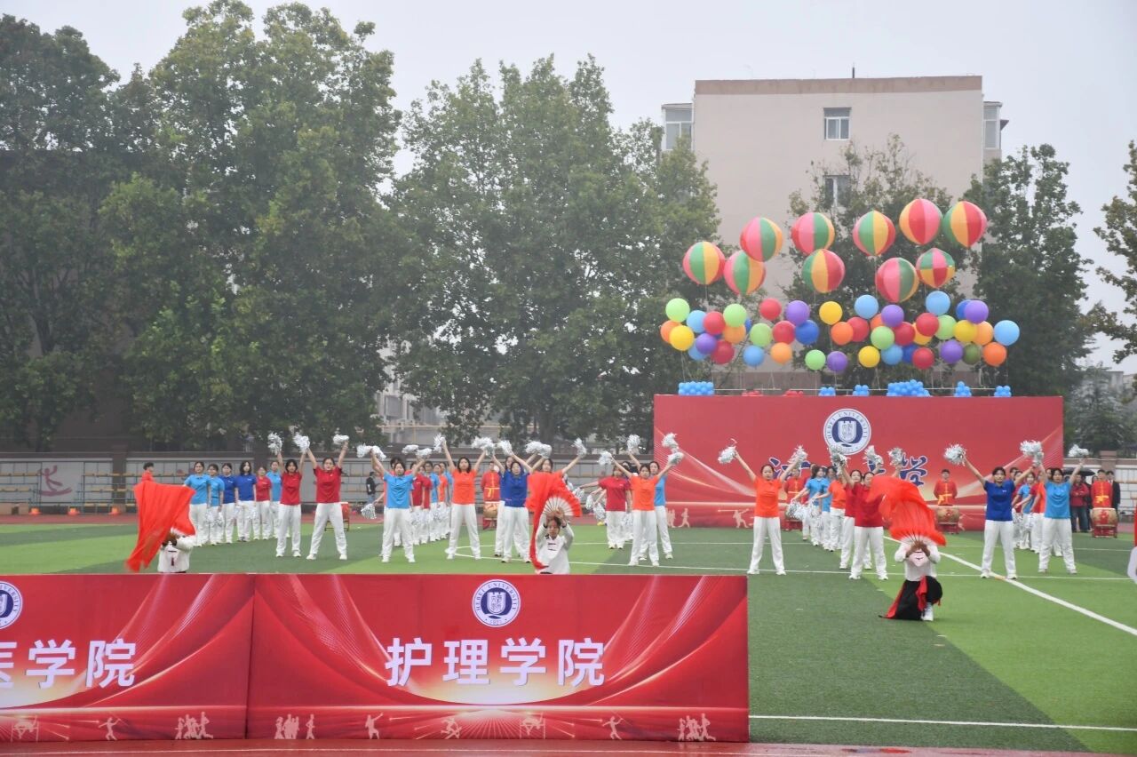 221名学子倾情奉献的大型团体操表演惊艳亮相。表演融合击鼓、舞狮、彩扇与健美操等元素,将传统文化底蕴与青春活力完美结合,展现了哲社学子团结一心、昂扬奋进的精神风貌,成为赛场一道亮丽的风景线。