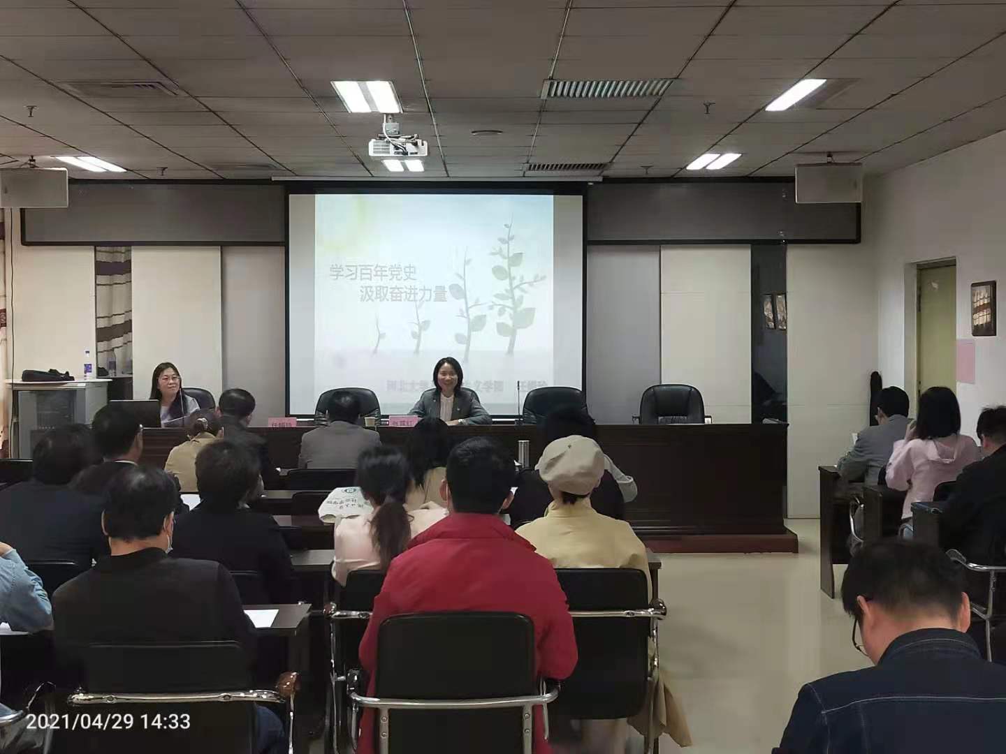 宣讲分为深入学习领会习近平总书记关于党的历史的重要论述,充分认识党史学习教育的重大意义;认真研读党史基本著作,全面了解党的百年光辉历程和历史性贡献;从党史学习中汲取建功立业的强大力量三部分内容。宣讲中,任娟玲教授以详实、生动的史料梳理了党团结带领人民实现了中华民族从站起来,到富起来,再到强起来的伟大飞跃,展现了我党的百年光辉历程。任教授指出,历史是好老师,学好党的历史,是坚持和发展中国特色社会主义、把党和国家各项事业继续推向前进的必修课;历史是营养剂,重温党的历史,才能做到知史爱党、知史爱国、以史鉴今、资政育人,才能传承红色基因,坚定理想信念,践行初心使命。