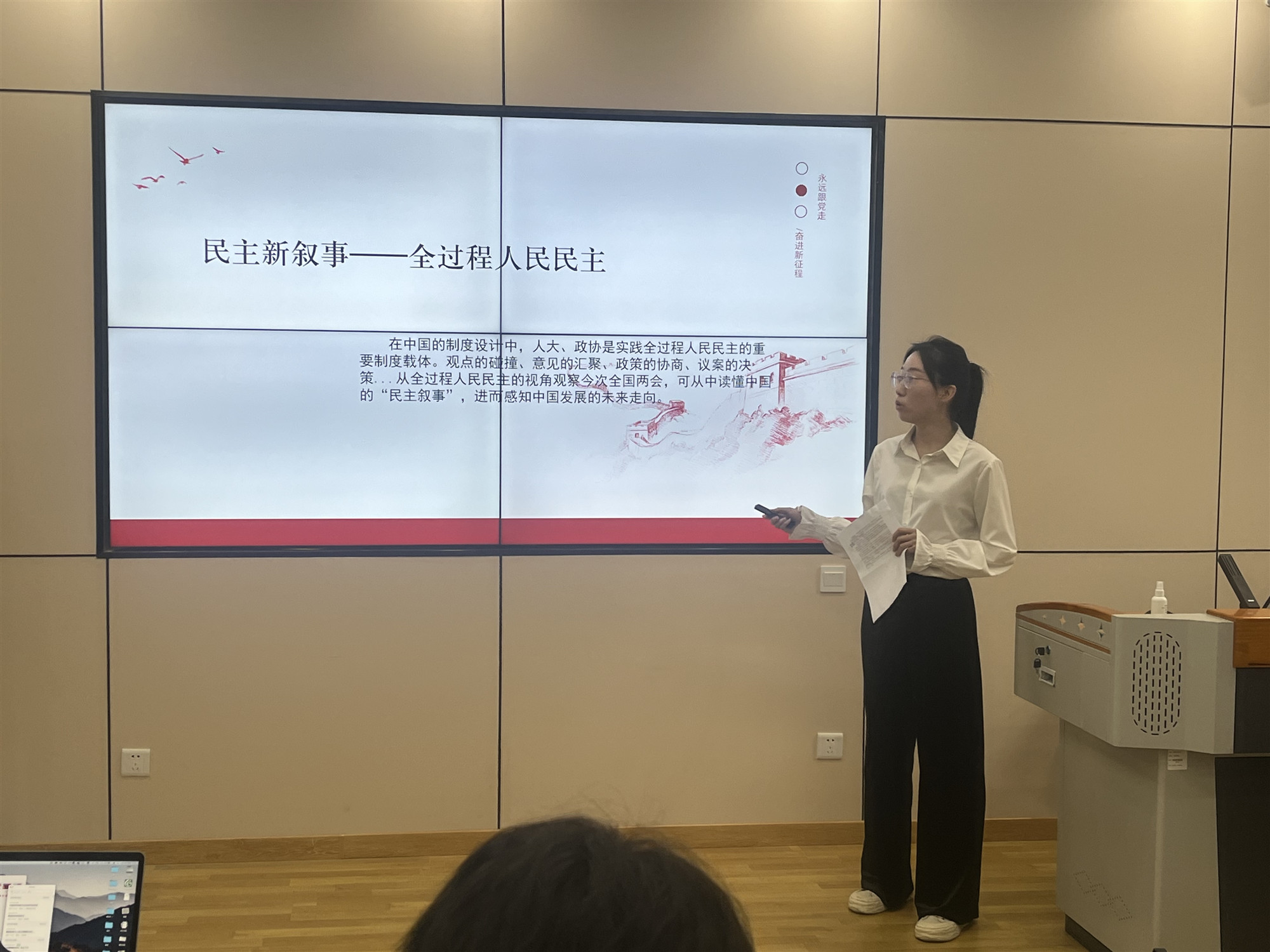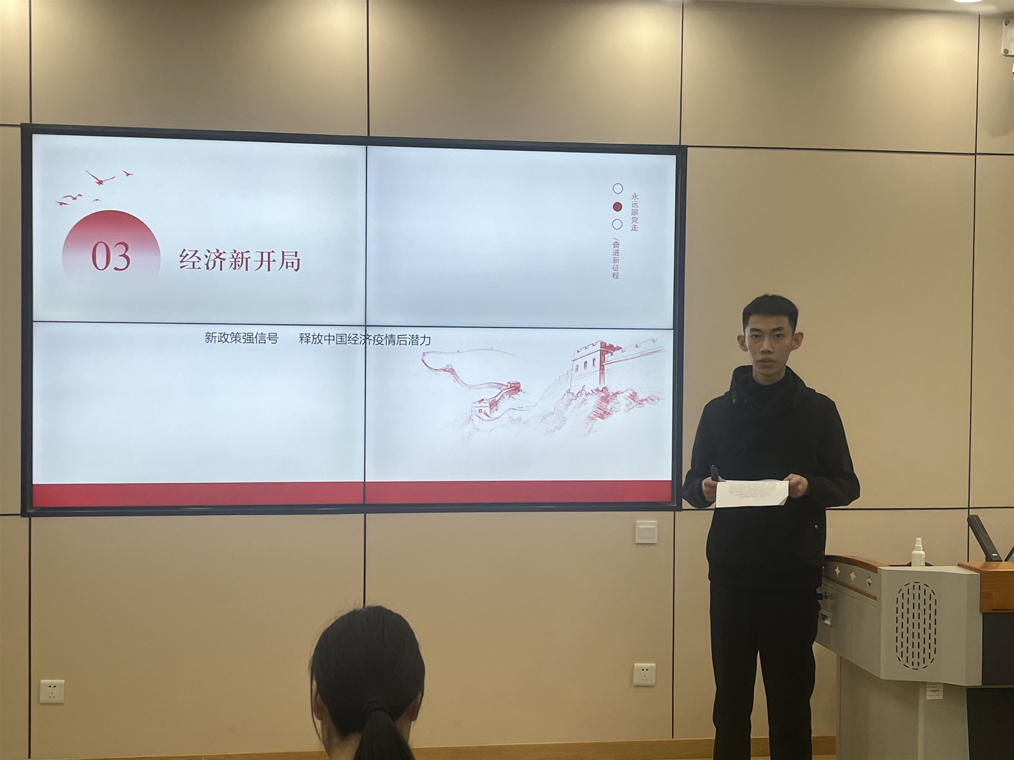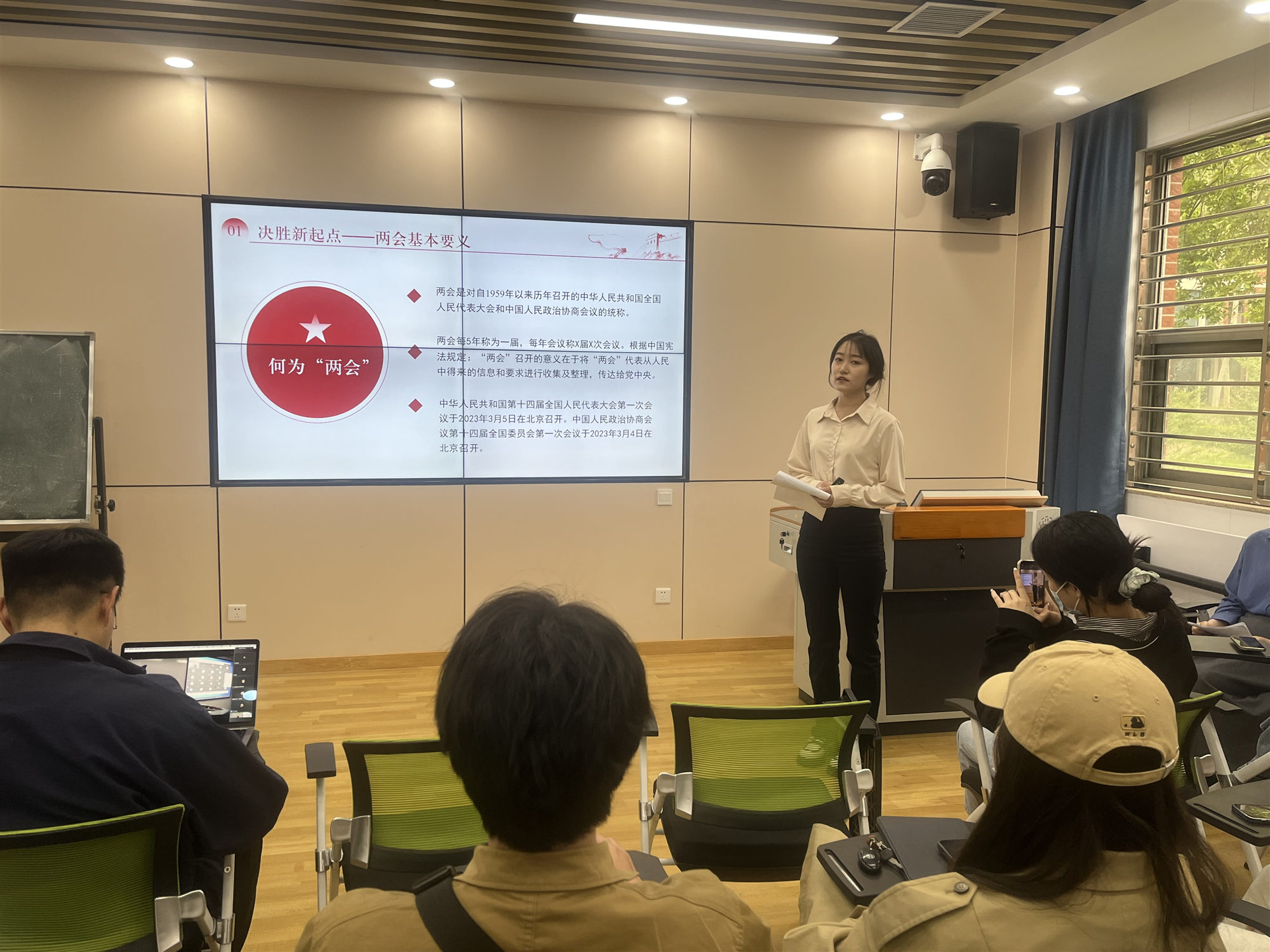 姜薇薇、张博文同学从“两会”的基本要义,国家五年的工作成就,以及“两会”召开对我国未来工作的展望等方面做了系统阐述。