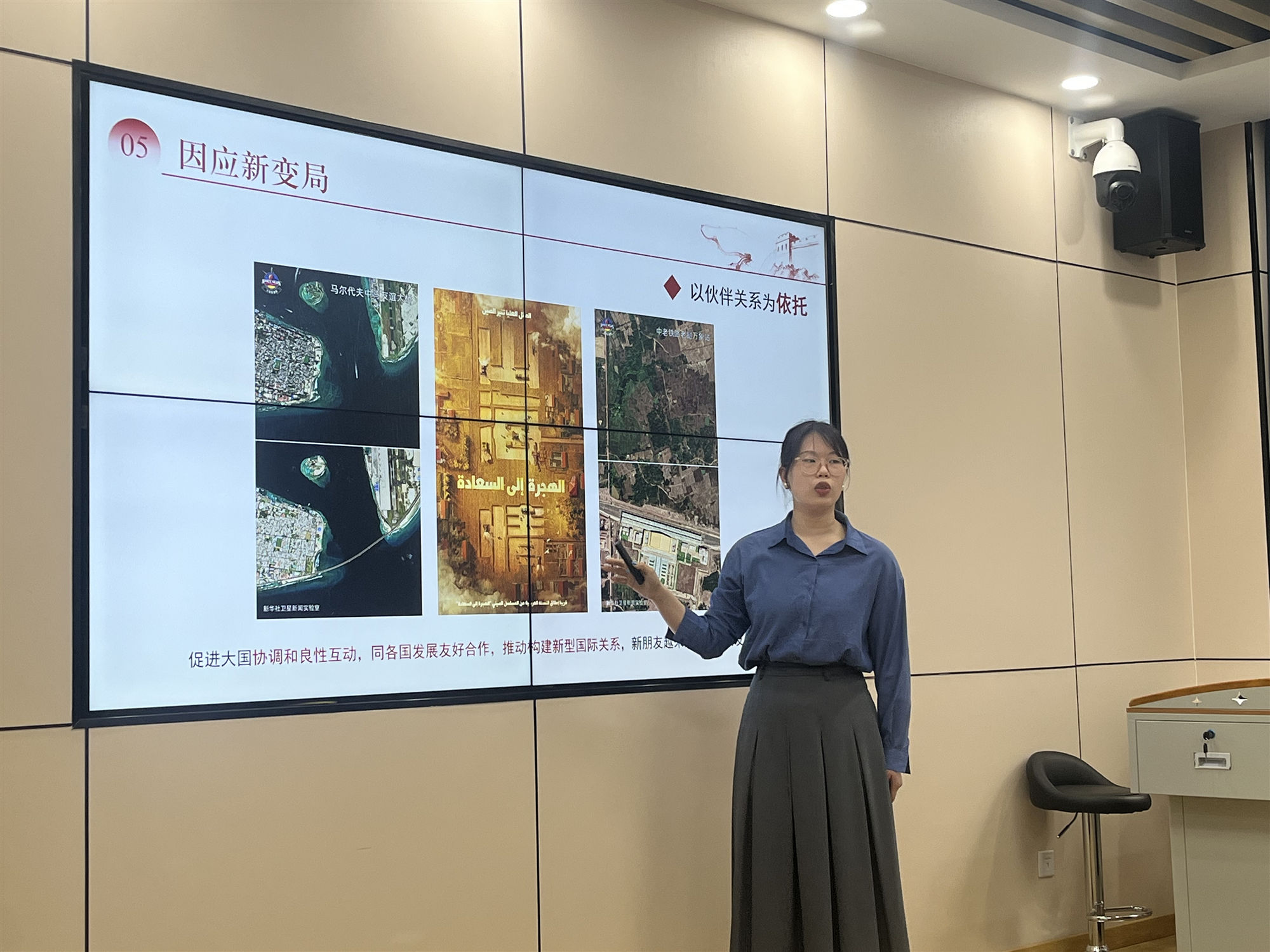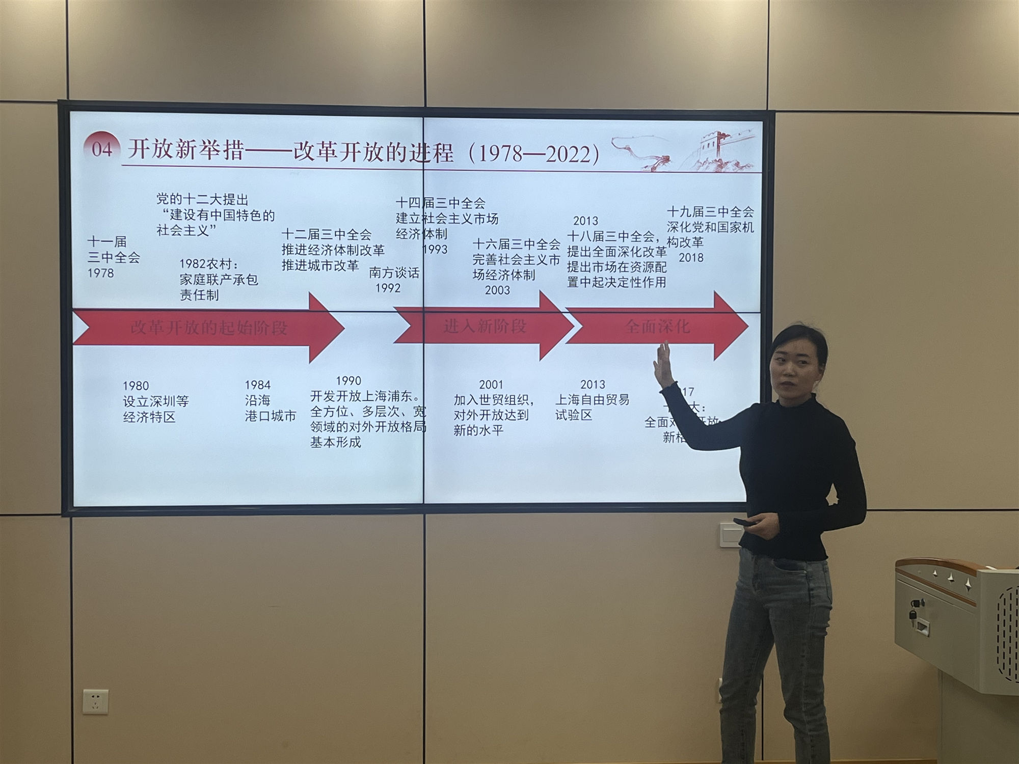 王璐和崔越兴同学从改革开放45年历程讲起,结合习近平总书记关于对外开放的重要论述,向我们展示了我国改革开放以来取得的重大成果和坚定不移深化改革开放的决心。同时结合我国发展实际情况为大家讲述了新时代对未来开放的时代要求和重要举措。