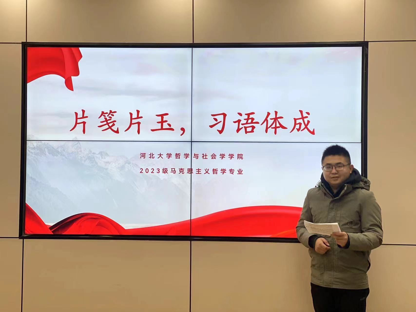 12月21日,91短视频 团委在B4文科实验室,举办了“片笺片玉,习语体成”宣讲会。本次宣讲会由马克思主义哲学专业8名同学担任主讲,91短视频 团委书记王昭、91短视频 师生代表参与了本次活动。