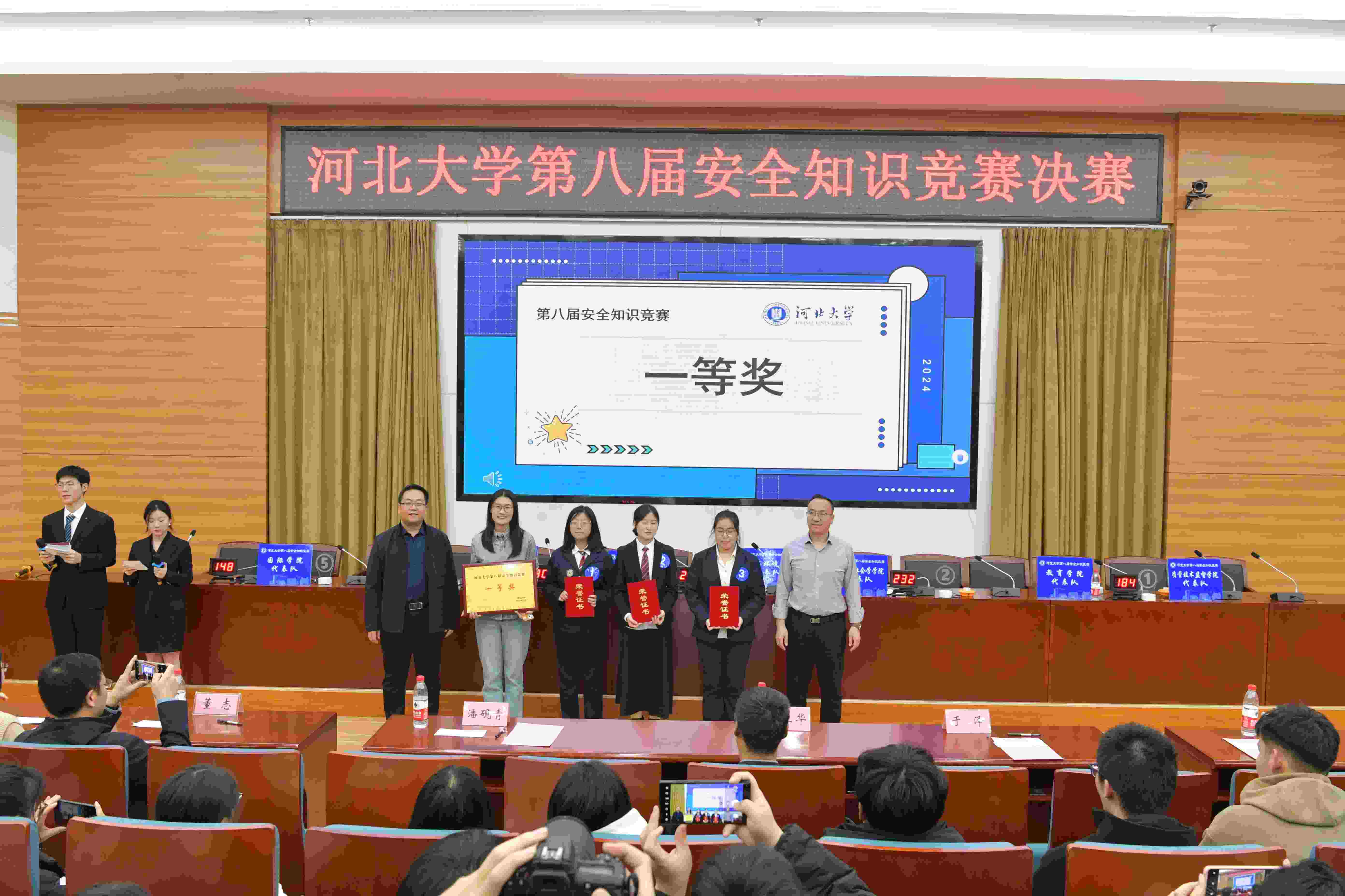 代表队凭借扎实的专业知识、出色的团队协作,荣获竞赛一等奖。本次安全知识竞赛覆盖了国家安全、消防安全、交通安全、网络安全、实验室安全、反邪教警示教育知识、心理健康等多个领域,题目设计既注重理论知识考核,又强调实践操作应用,全面检验了参赛选手的安全知识储备和解决实际问题的能力。