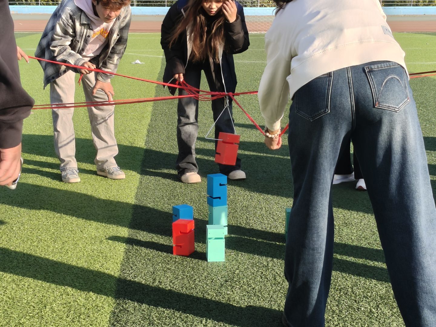 随后的“不倒森林”与“合力搭建”环节将活动推向高潮。“不倒森林”要求每位成员全神贯注、默契配合,象征着集体需要每个个体的稳定支撑;“合力搭建”则以班级为单位,同学们共同操控绳索、垒高积木,充分展现了团队沟通、策略制定与信任协作的重要性。哲学专业的思辨与社会工作专业的实践智慧在活动中交织碰撞,凝结成一座座象征集体荣誉的高塔。